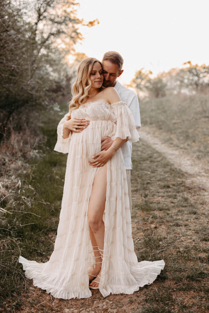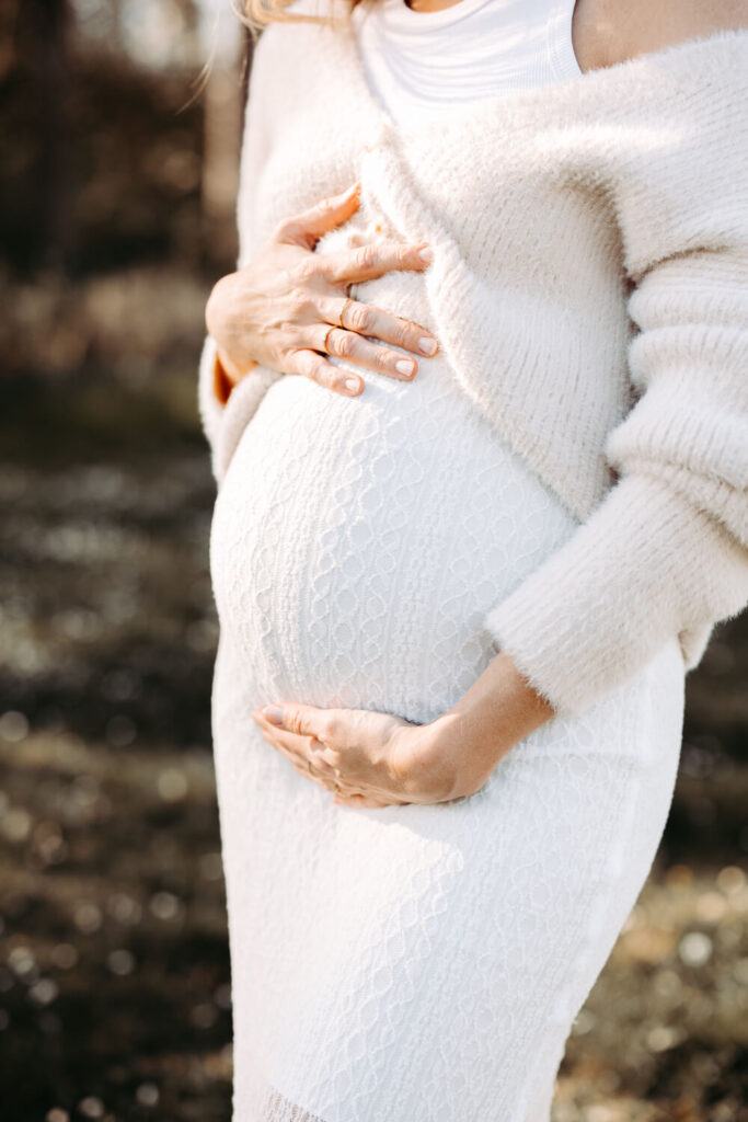 Die „Golden Hour“, also die Abendstunden, ermöglichen eine wunderschöne und warme Atmosphäre. Daher treffen wir uns ca. 1-2 Stunden vor dem Sonnenuntergang am vereinbarten Ort, um das schönste Licht auf euren Bildern einzufangen. Ich werde euch während des Babybauch Shootings sanft anleiten, sodass ihr zu keiner Zeit unsicher seid, was ihr tun sollt. Gleichzeitig gebe ich euch keine steifen Posen, sondern lasse euch Spielraum in eurer Bewegung. Dabei entstehen sowohl spaßige als auch innige Momente.